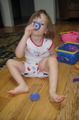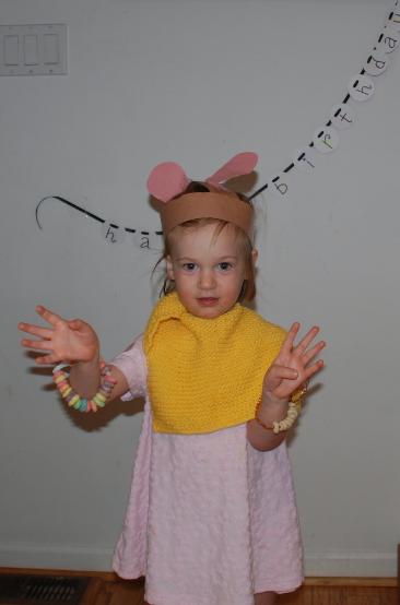 Showing off her puppy ears, her birthday
